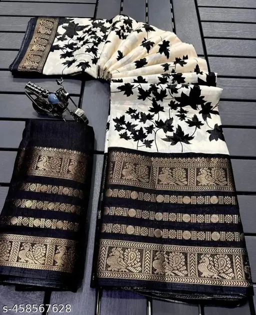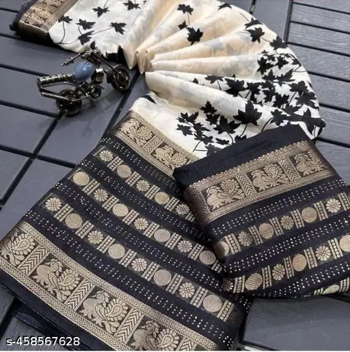 Soft Dola Silk with beauifull Ikkat Print. Premium Quality Assured. Very Soft Fabric and Beautiful Jacquad Fancy Border and Pallu with Contrast Blouse.Give us chance to Feel you very Happy for this Purchase with our Supreme Quality and Prints