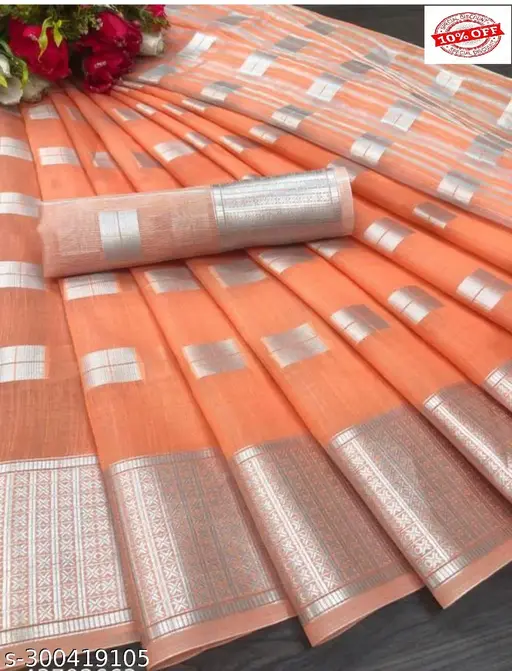 TRENDING COTTON LINEN SAREE IDEAL FOR DAILY WEAR IDEAL FOR WOMEN AND GIRLS GOOD FABRIC QUALITY AND NICE DESIGN